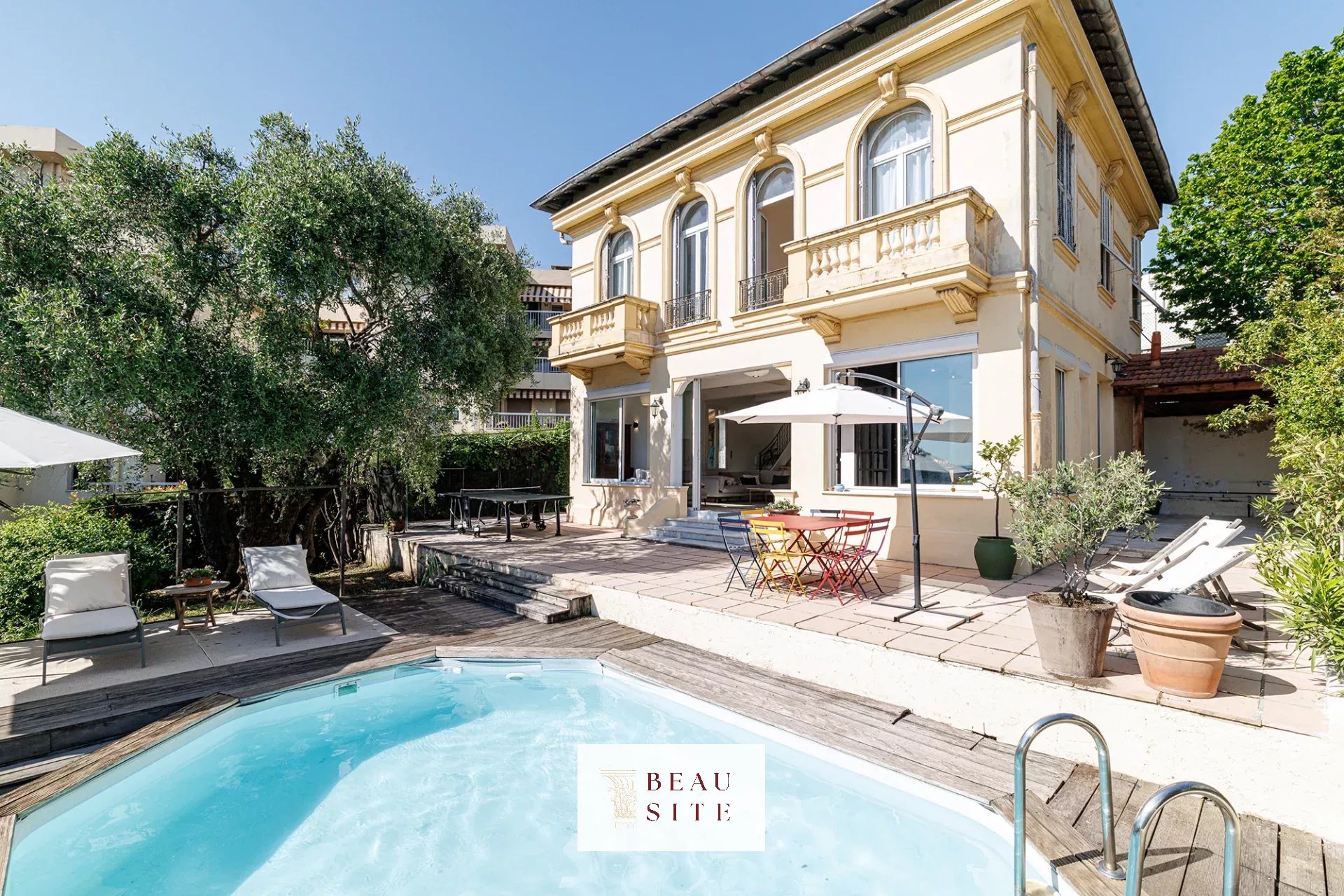 D’une surface de 136 m² habitables, cette élégante bâtisse entièrement rénovée à l’intérieur est implantée sur un beau terrain de 600 m² environ, agrémenté de nombreuses terrasses et d’une piscine hors-sol pour profiter pleinement du climat azuréen.